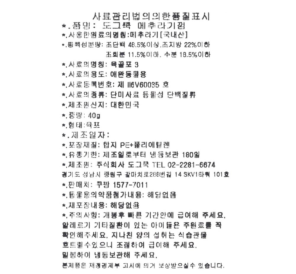 | 제조국(원산지) | 대한민국 | 제조자(수입자) | 도그쿡 |