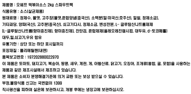 | 제품명 | 오쉐프 떡볶이소스 | 식품의 유형 | 소스류(살균제품) |