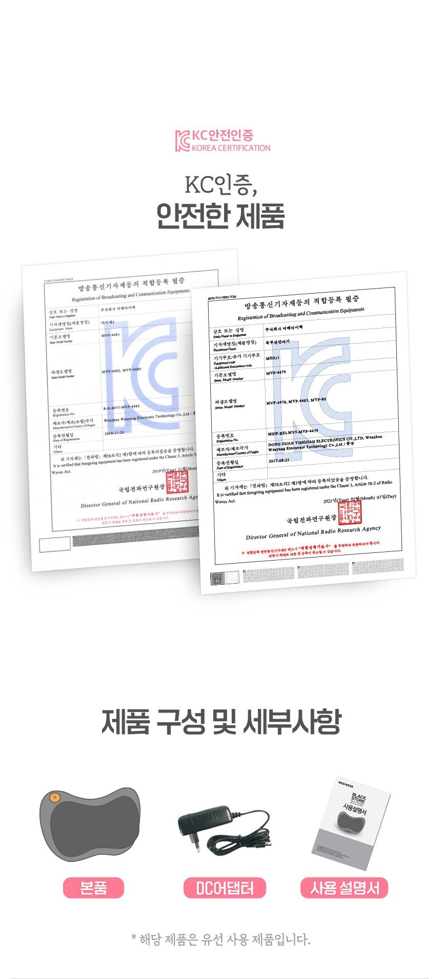 | 품명 및 모델명 | 메디니스 아이넥 쿠션안마기 브라운 MVP-4479 | KC 인증정보 | 본품 : R-R-MV5-MVP-4479 / 어댑터 : MSIP-REM-ZP6-ZL-030AL / HU10950-17002A |