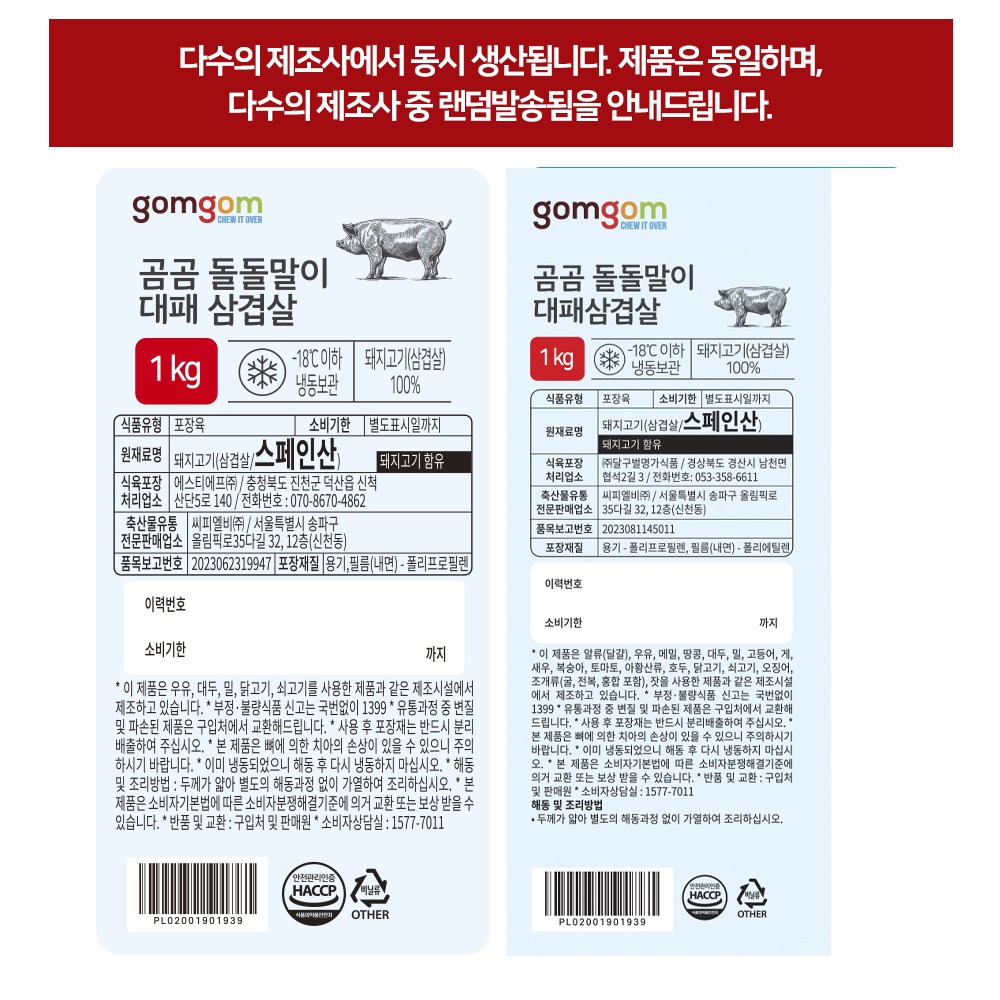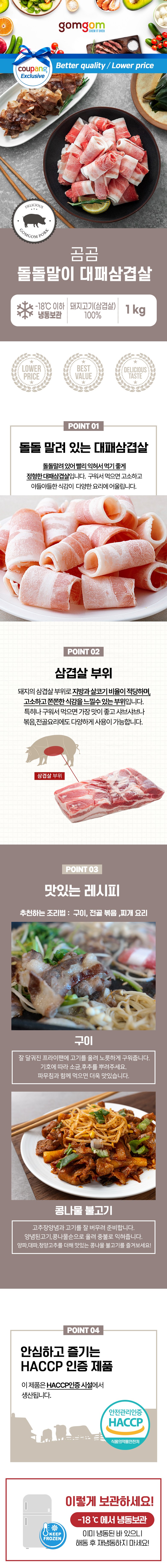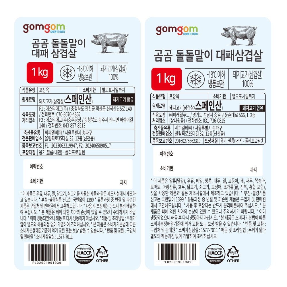| 품목 또는 명칭 | 곰곰 돌돌말이 대패삼겹살 | 포장단위별 내용물의 용량(중량),수량,크기 | 1kg x 2개,1개 |