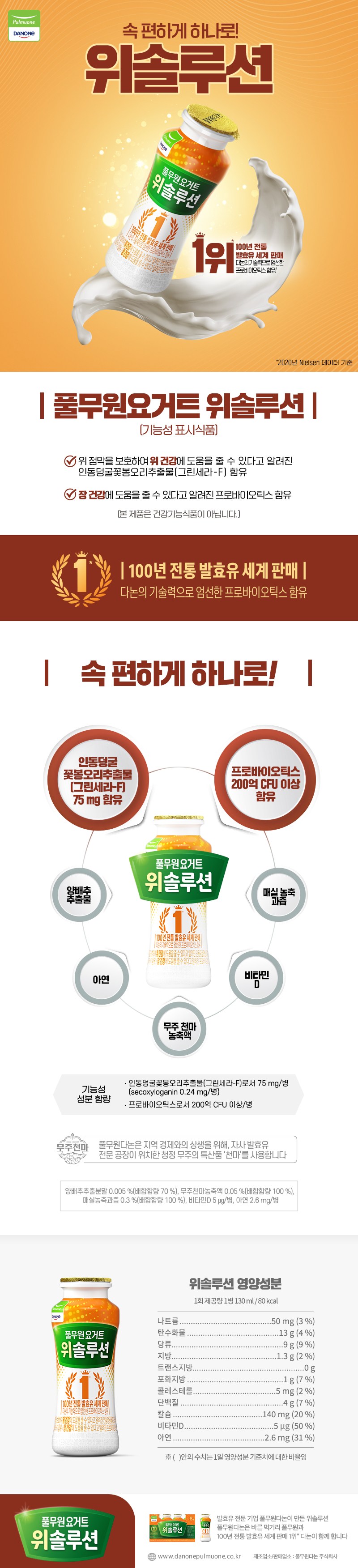 | 제품명 | 풀무원다논 위솔루션 | 식품의 유형 | 컨텐츠참조 |