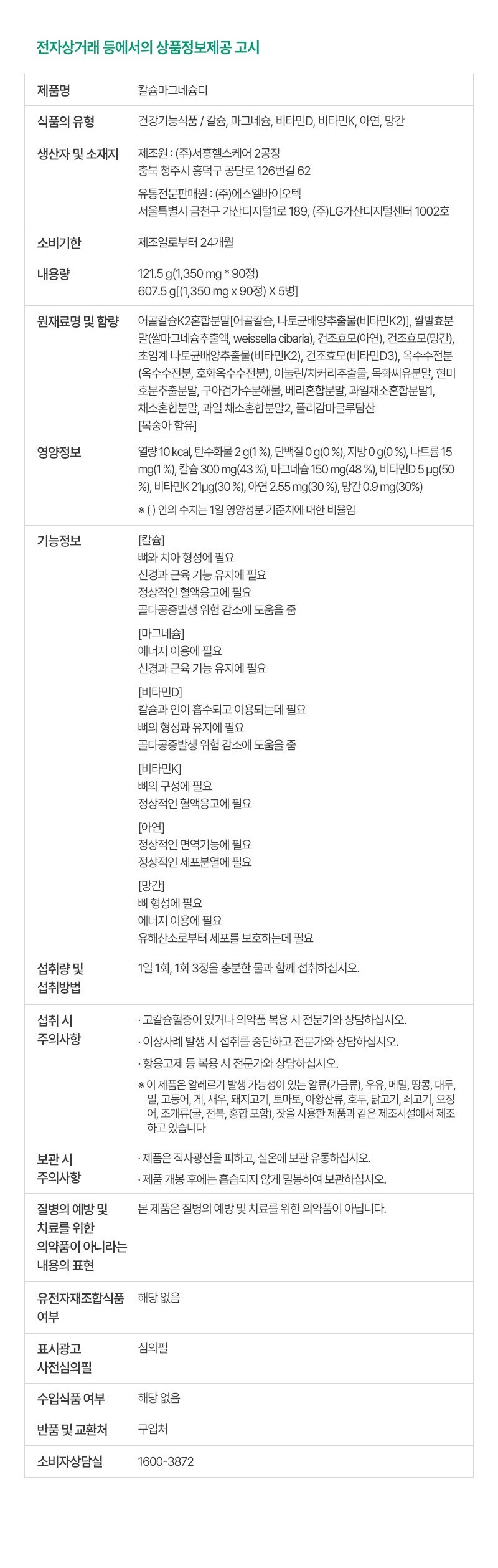 | 제품명 | 칼슘마그네슘디 | 제조업소의 명칭과 소재지 | 컨텐츠 참조 |