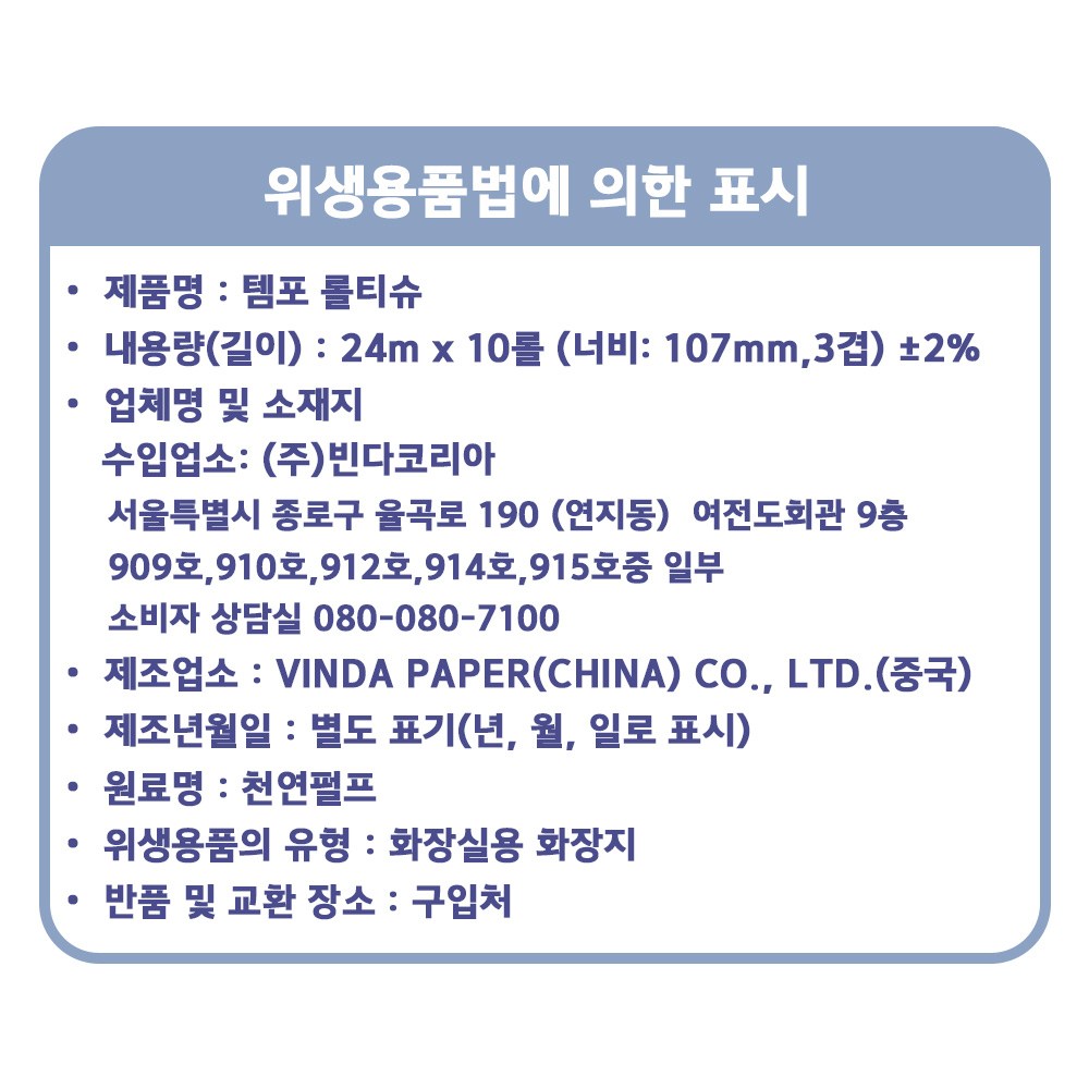 | 품명 및 모델명 | 템포 롤티슈 | 인증/허가 사항 | 위생용품 |