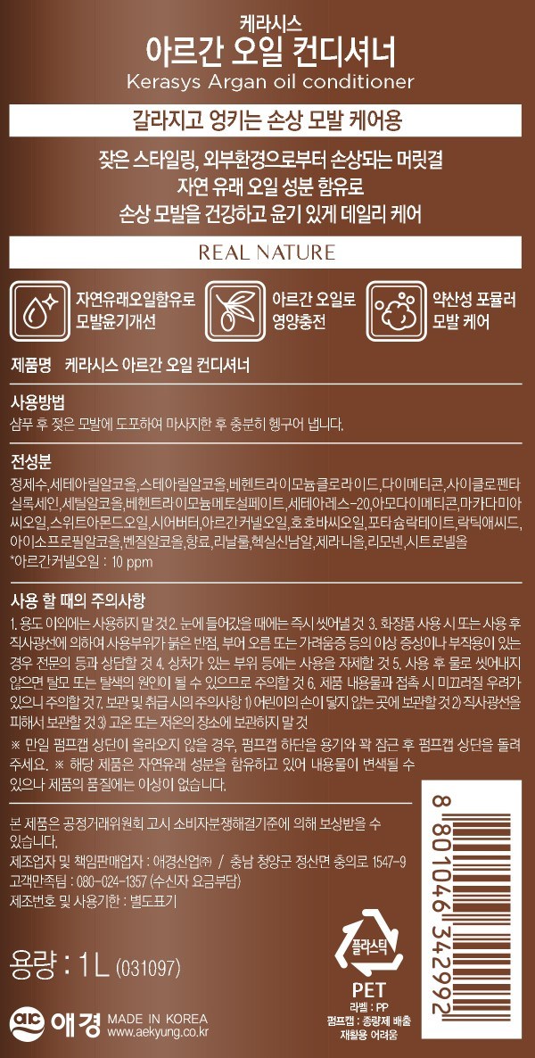 | 용량(중량) | 1L | 제품 주요 사양 | 모든 모발용 |