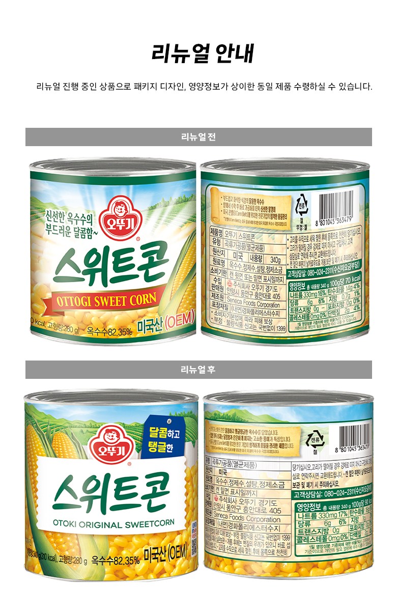 | 제품명 | 오뚜기스위트콘 | 식품의 유형 | 컨텐츠 참조 |