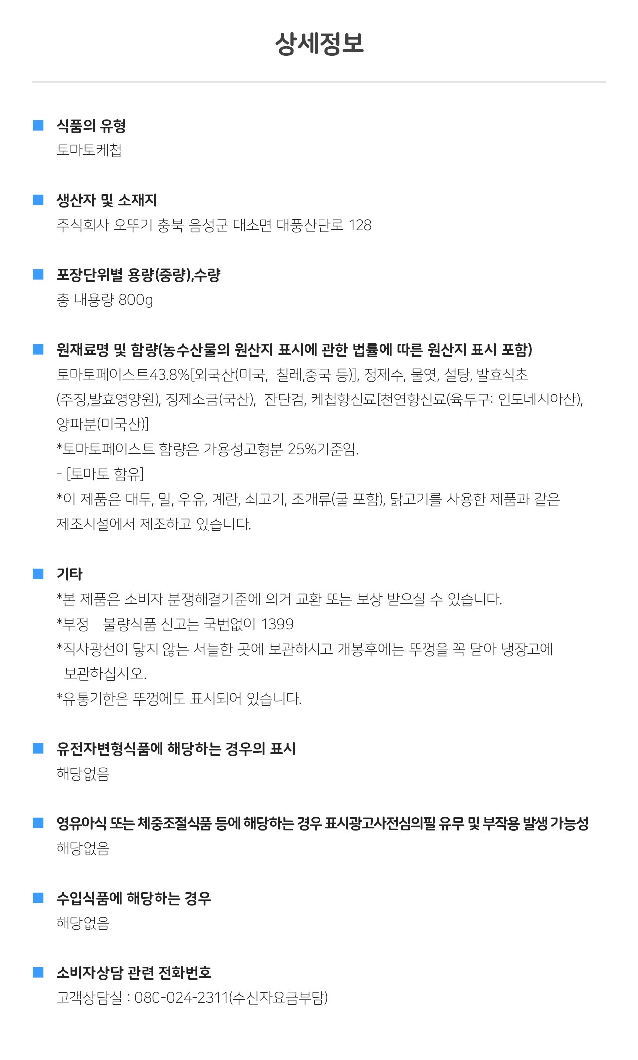| 제품명 | 토마토케챂 | 식품의 유형 | 컨텐츠 참조 |