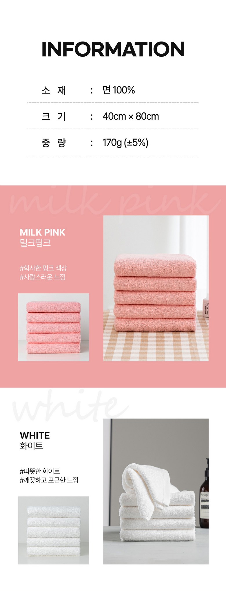 - 수건 종류: 세면타올