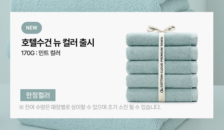 | 품명 및 모델명 | 코튼클라우드 호텔수건 170g | 인증/허가 사항 | 상품 상세페이지 참조 |