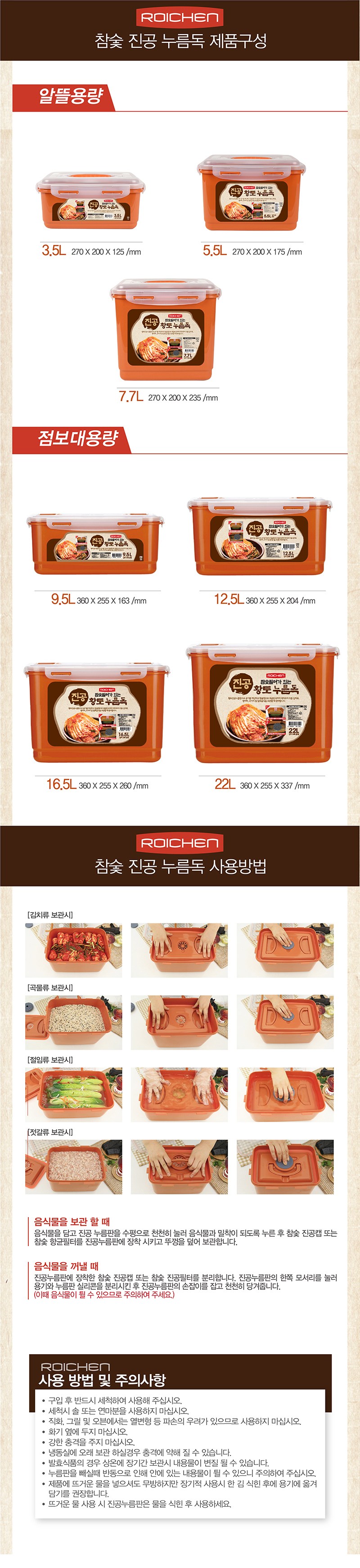 | 품명 및 모델명 | 로이첸 참숯 진공 황토 누름독 12.5L | 재질 | 용기-P.P/뚜껑-P.P,실리콘/누름판-P.P,엘라스토마 |