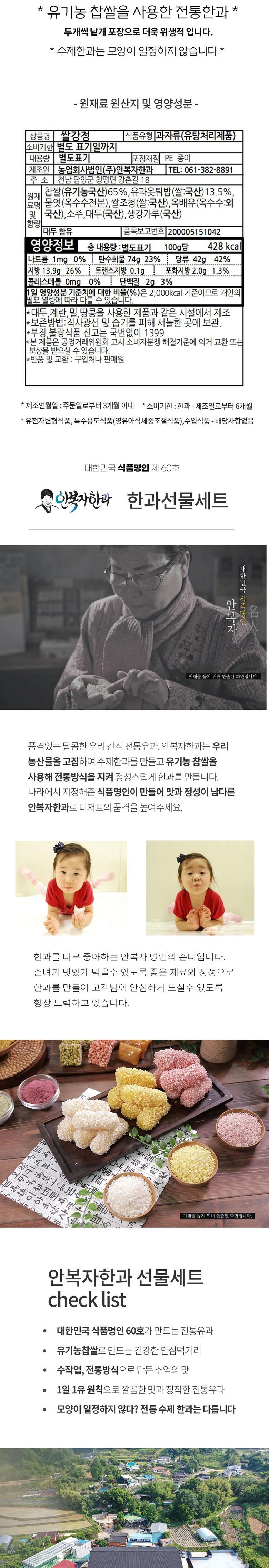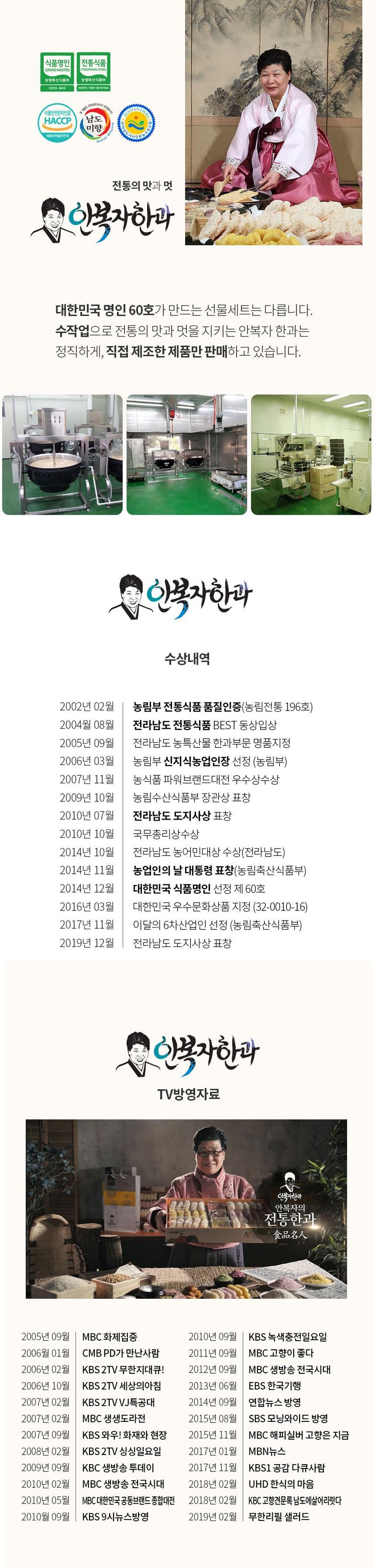 상호/대표자 | 농업회사법인(주)안복자한과 / 안복자 | 사업장 소재지 | 전남담양군창평면의항리 431-1 |
