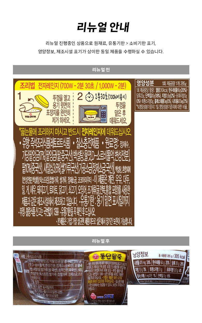 | 제품명 | 통단팥죽 | 식품의 유형 | 컨텐츠 참조 |
