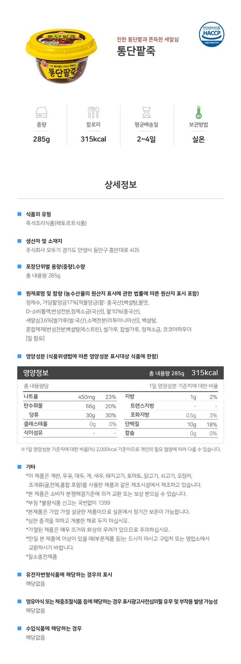 | 포장단위별 내용물의 용량(중량), 수량 | 상세참조 | 원재료명 및 함량 | 농수산물의 원산지 표시에 관한 법률에 따른 원산지 표시 포함 |