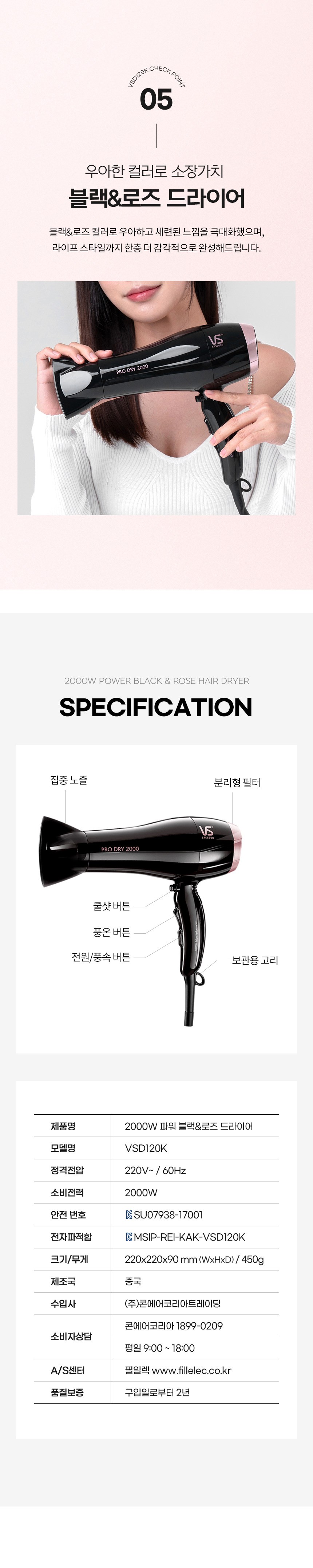 | 품명 및 모델명 | 드라이기 VSD120K | KC 인증정보 | SU07938-17001 , MSIP-REI-KAK-VSD120K |