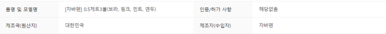 | 품명 및 모델명 | 상품 상세페이지 참조 | 인증/허가 사항 | 상품 상세페이지 참조 |
