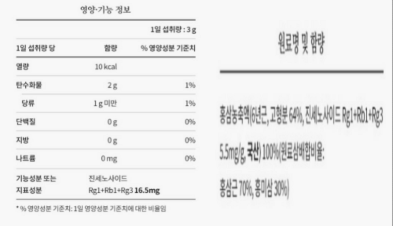 | 원료명 및 함량 | 상품 상세페이지 참조 | 영양정보 | 상품 상세페이지 참조 |