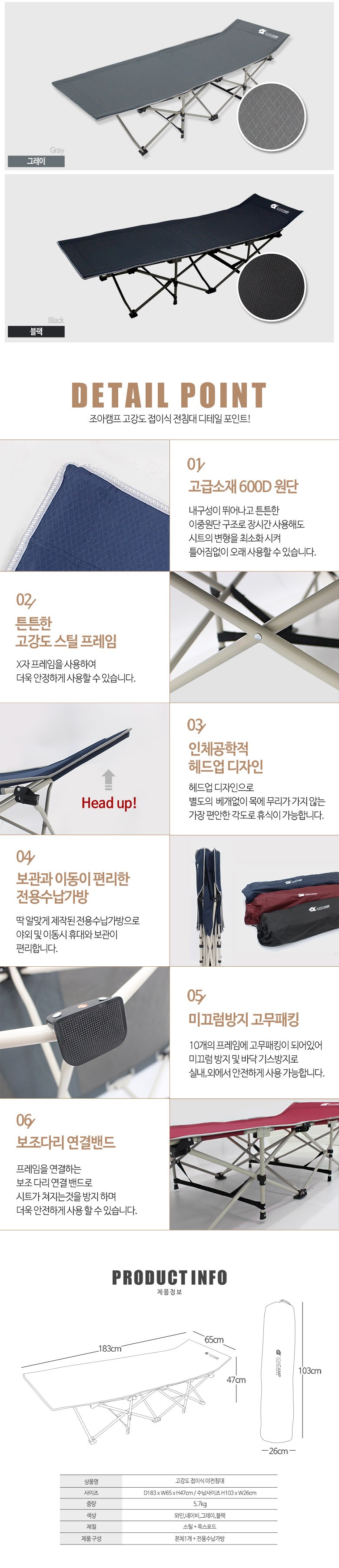 | 품명 및 모델명 | 고강도 접이식 야전침대 | KC 인증정보 | 해당없음 |