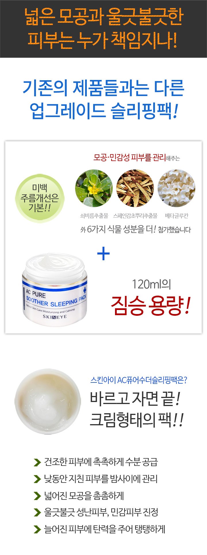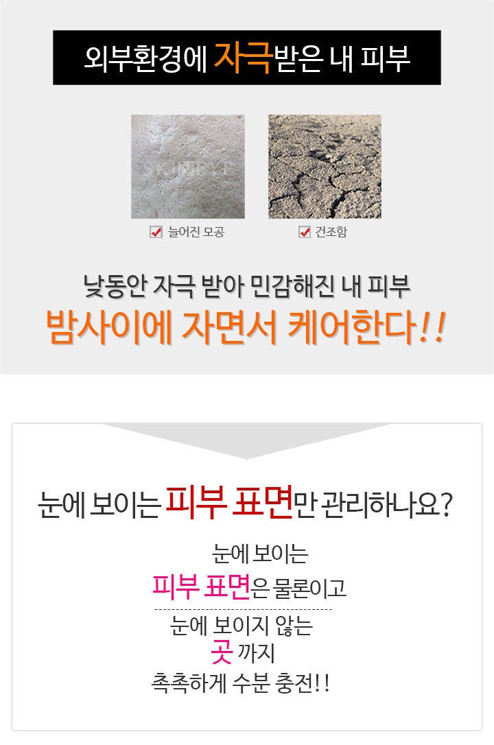 | 사용기한 또는 개봉 후 사용기간 | 제조일부터 2년 6개월. 공급사 사정에 따라 제조일자가 다른 상품이 입고되어 정확한 제조년월일 및 사용기한 확인이 어렵습니다. 제조년월일 확인이 어려운 상품은 유통기한을 기준으로 배송되므로 구매 시 유통기한을 참고 부탁드립니다. | 사용방법 | 1. 기초관리 마지막 단계에서 적당량을 취해 얼굴 전체에 골고루 도포하고그대로 잠자리에 듭니다.2. 다음 날 아침, 가볍게 세안해주세요. |