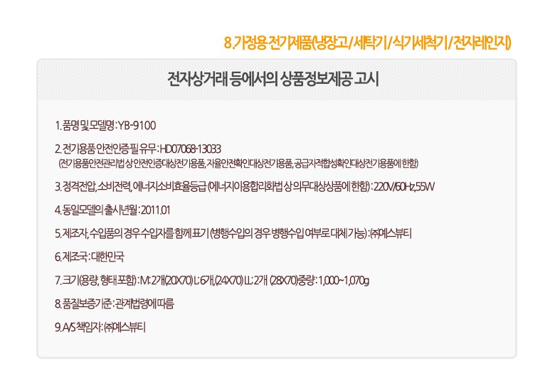 | 제조국(원산지) | 대한민국 | 제조자(수입자) | 예스뷰티 |