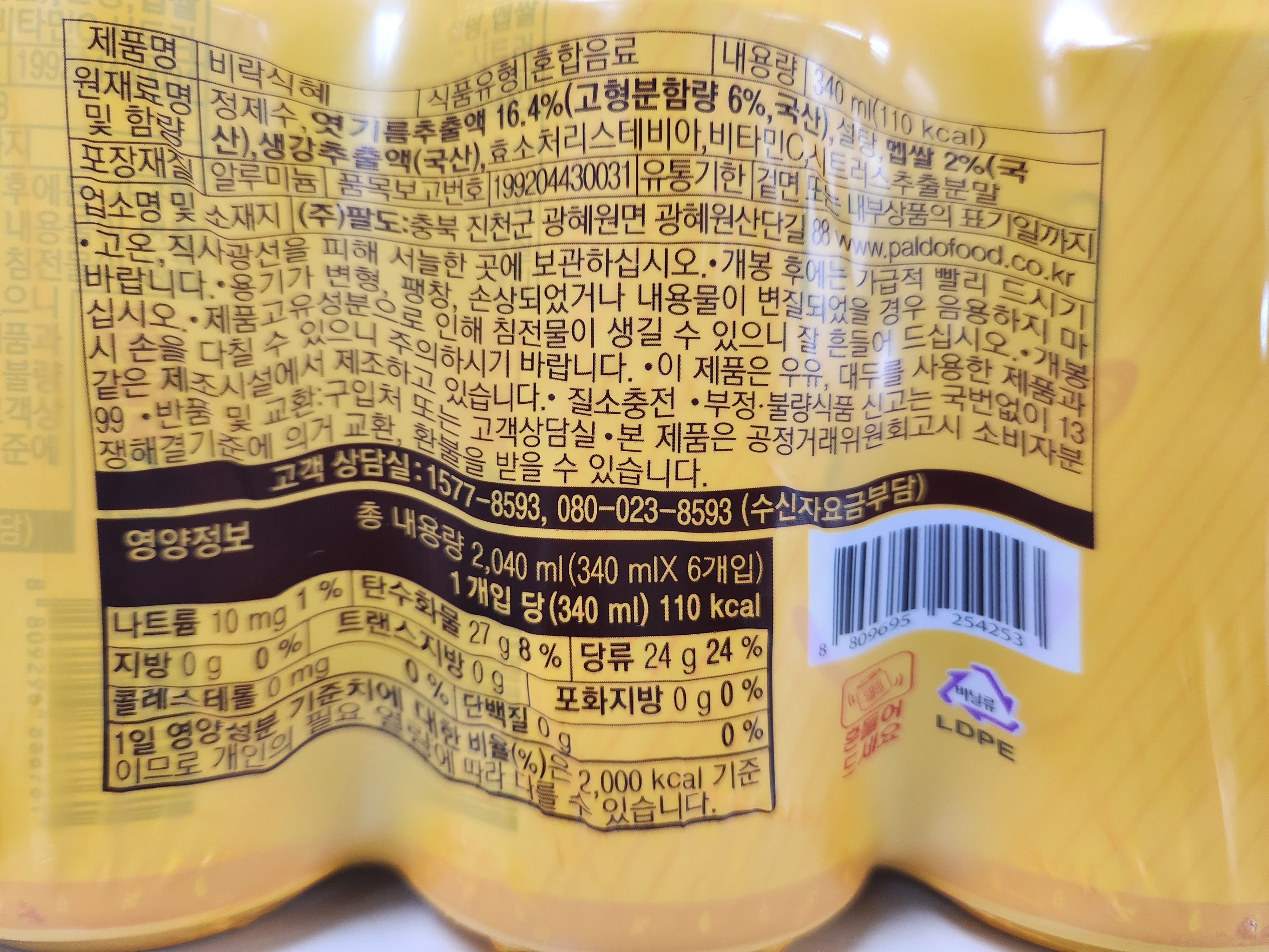 | 포장단위별 내용물의 용량(중량), 수량 | 340ml x 12개,1개 | 원재료명 및 함량 | 컨텐츠참조 |