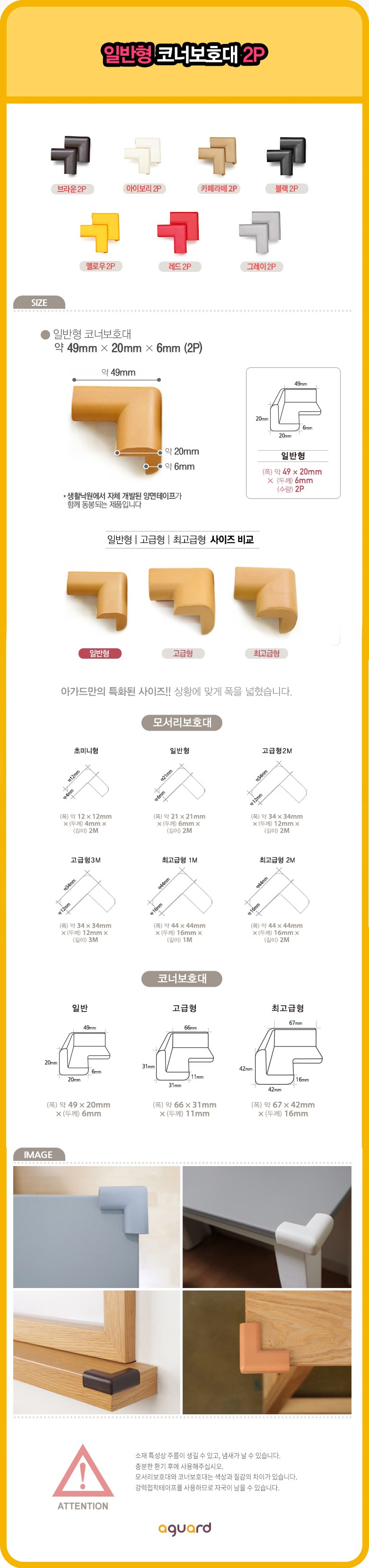 - 보호대 사용용도: 코너용