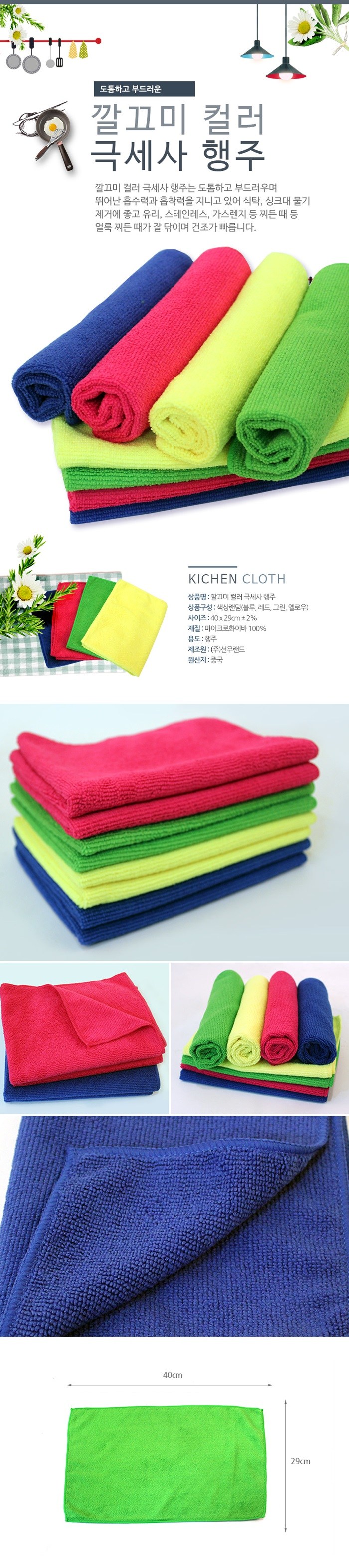 | 품명 및 모델명 | 선우랜드 깔끄미칼라극세사행주 | 재질 | 컨텐츠 참조 |