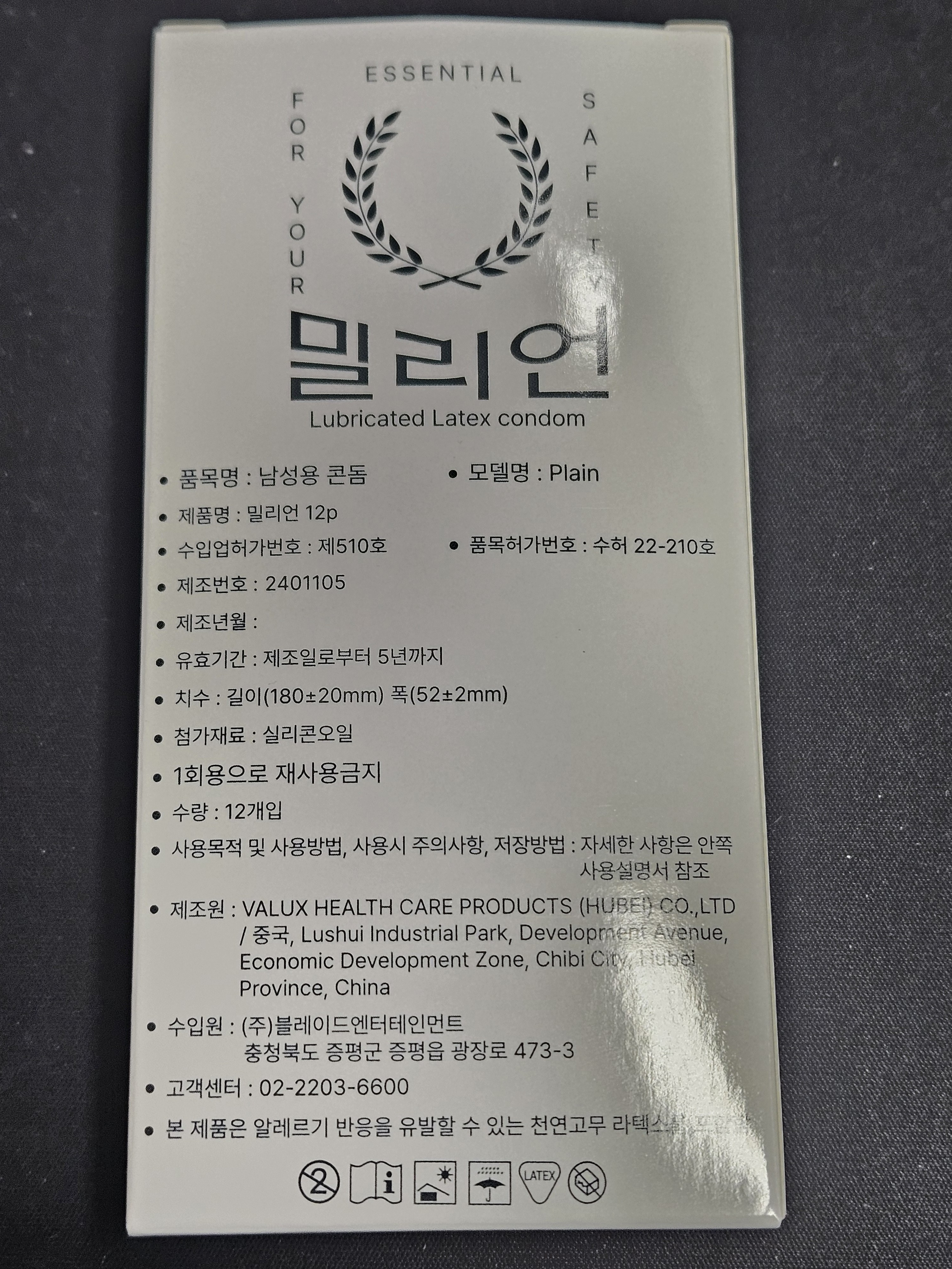 | 품명 및 모델명 | 남성용 콘돔 / Plain | 허가∙인증∙신고번호 (의료기기법에 따른 허가∙인증∙신고 대상 의료기기에 한함) | 품목허가번호 : 수허 22-210호 |