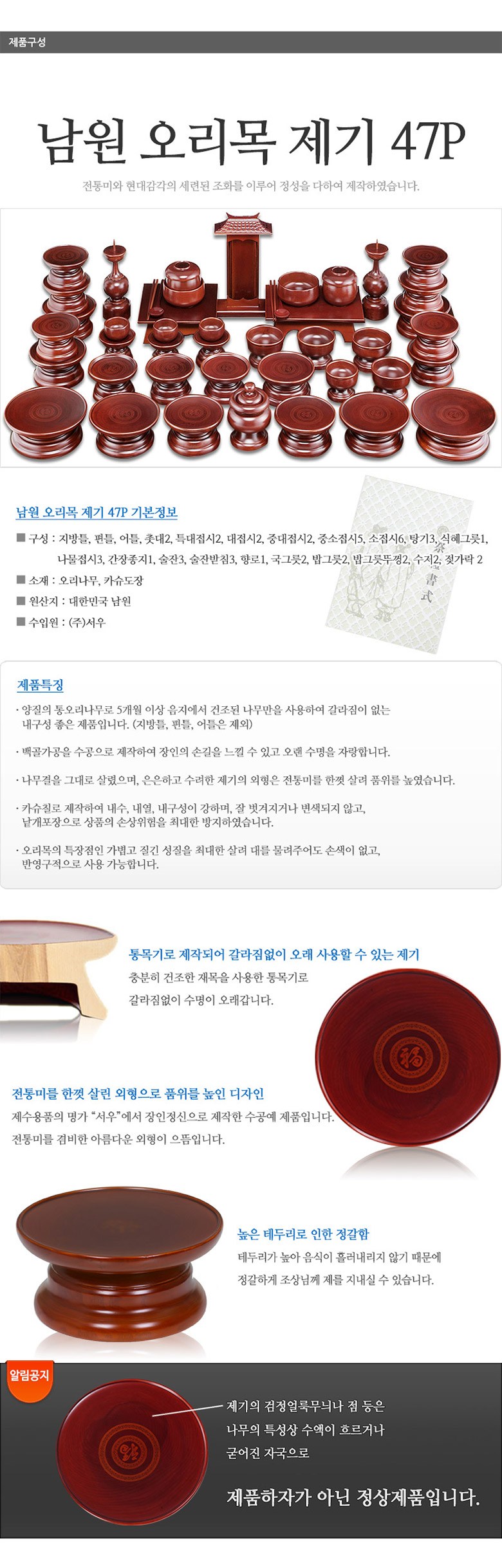 | 품명 및 모델명 | 서우 남원 복오리목제기 47개입 세트, 1세트, 제기 47종 | 인증/허가 사항 | 해당 없음 |
