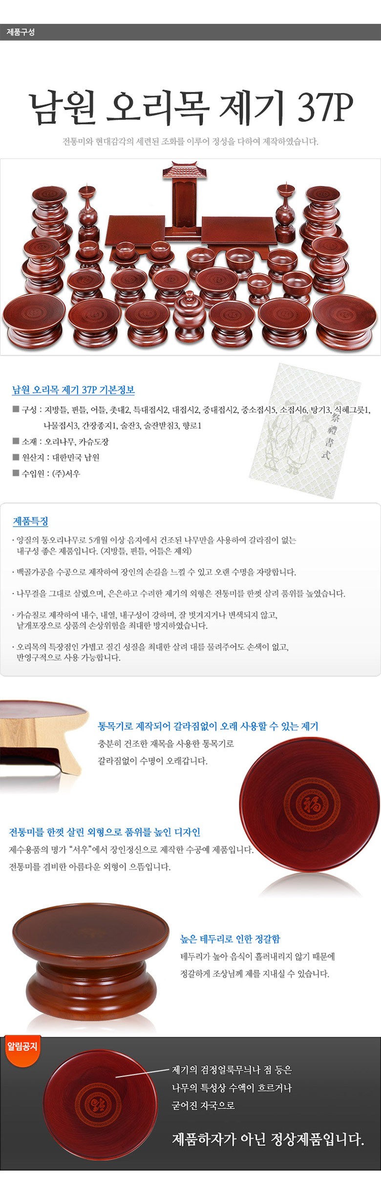| 제조국(원산지) | 대한민국(대한민국) | 제조자(수입자) | 성심목기 / (주)서우 |