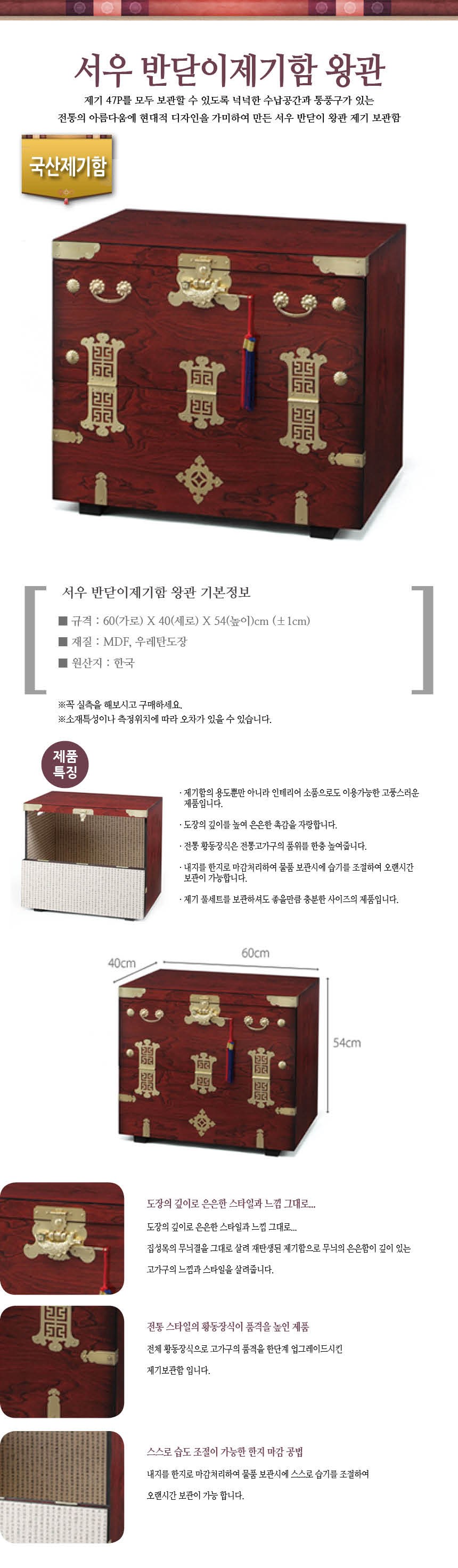 | 품명 및 모델명 | 서우 반닫이제기함 왕관 | 인증/허가 사항 | 해당 없음 |