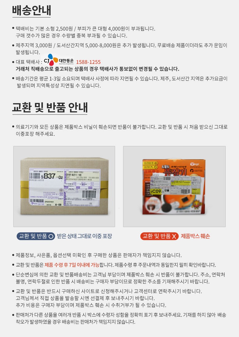 - ㆍ교환/반품에 관한 일반적인 사항은 판매자가 제시사항보다 관계법령이 우선합니다.