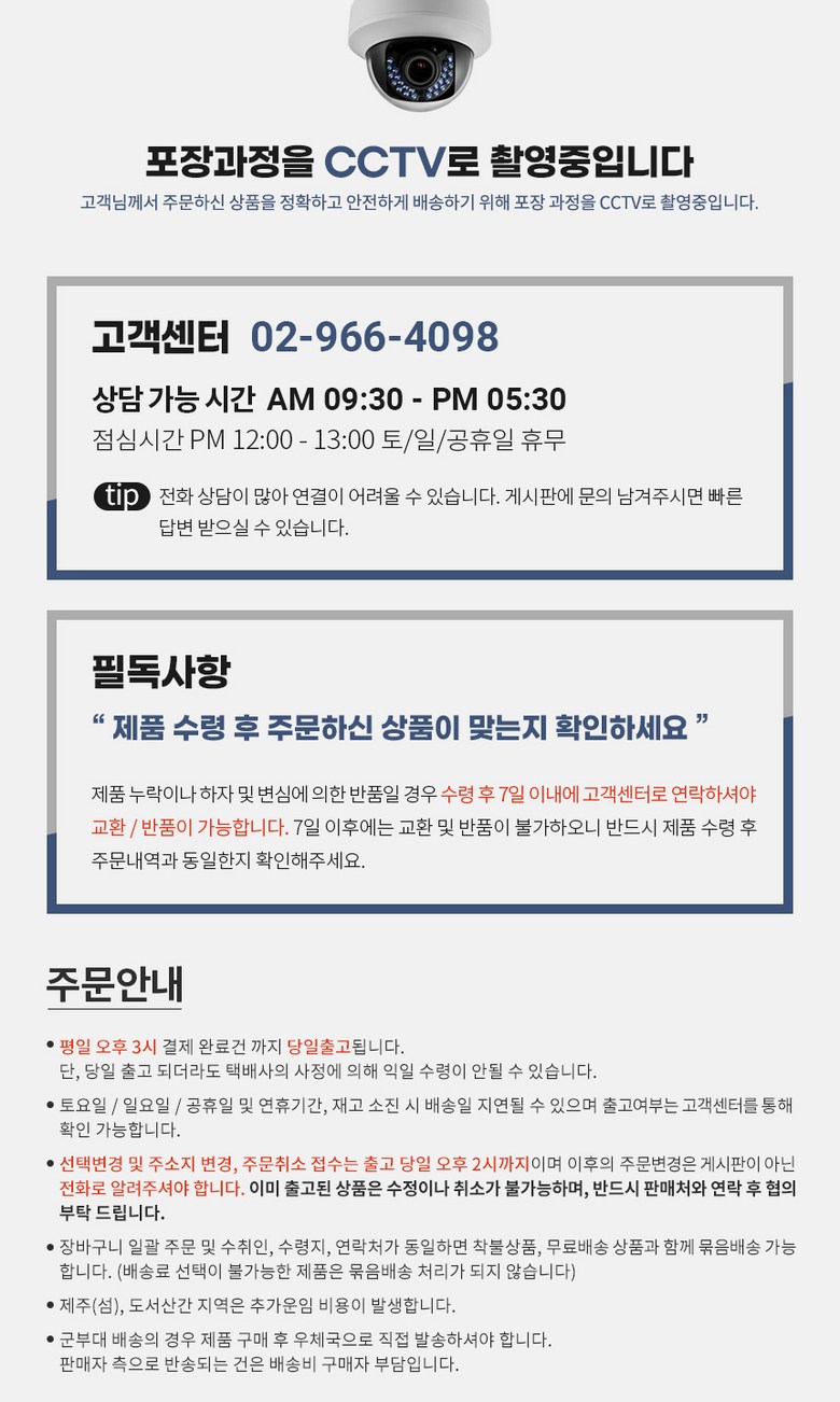 - 상품문의 및 후기게시판을 통해 취소나 환불, 반품 등은 처리되지 않습니다.