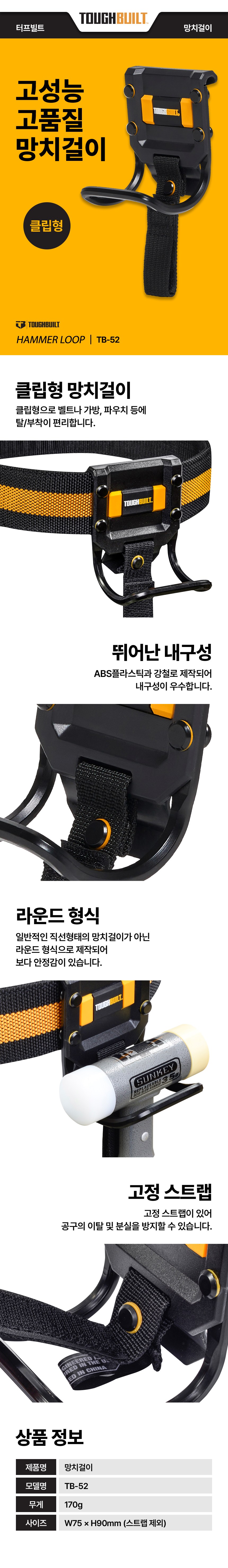 | 품명 및 모델명 | 터프빌트 망치걸이 TB-52 | 인증/허가 사항 | 해당없음 |