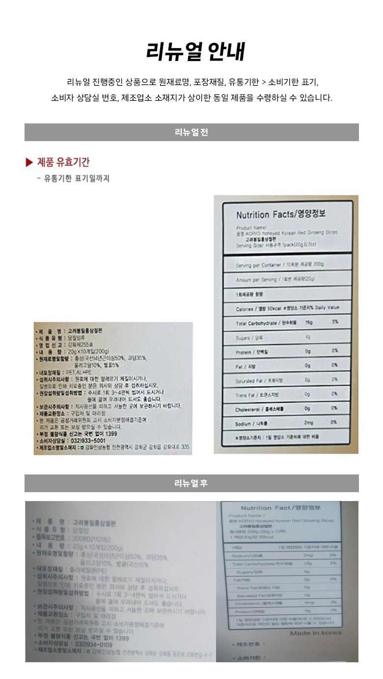 | 생산자 및 소재지 | 컨텐츠 참조 | 제조연월일, 소비기한 또는 품질유지기한 | 업데이트 예정 |