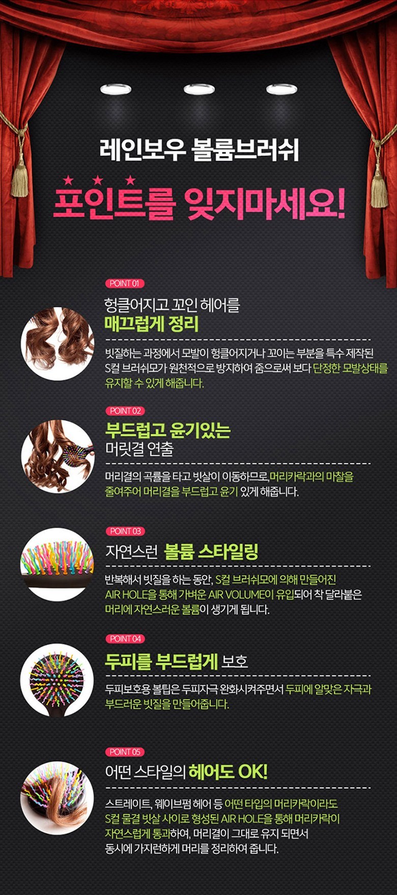 - 헤어브러쉬 타입: 패들/쿠션 타입