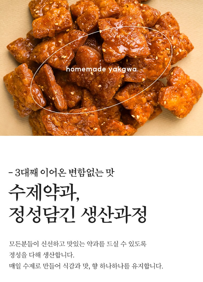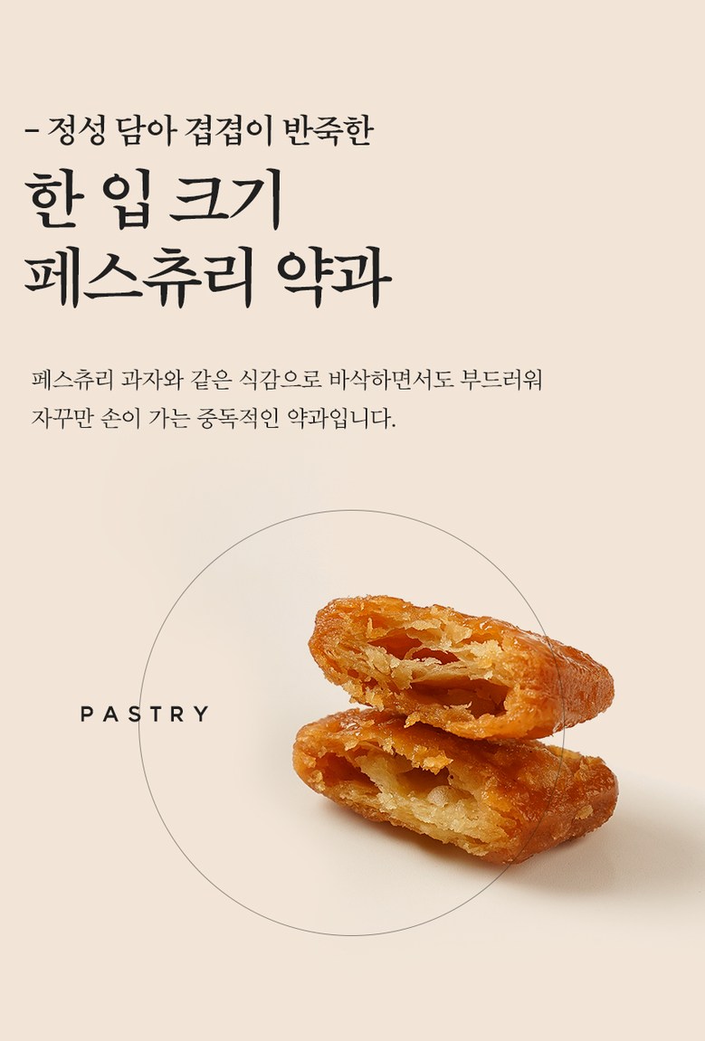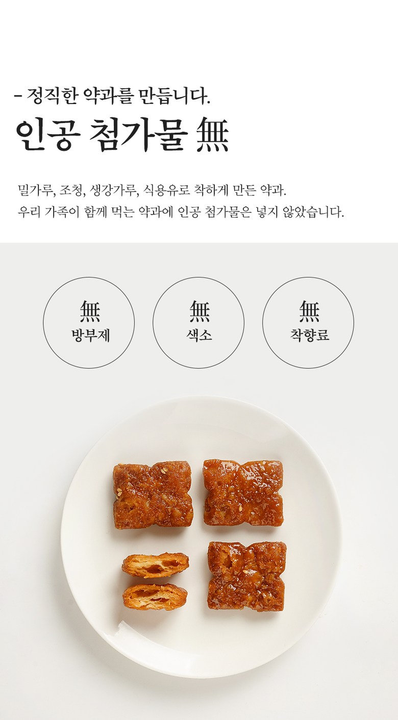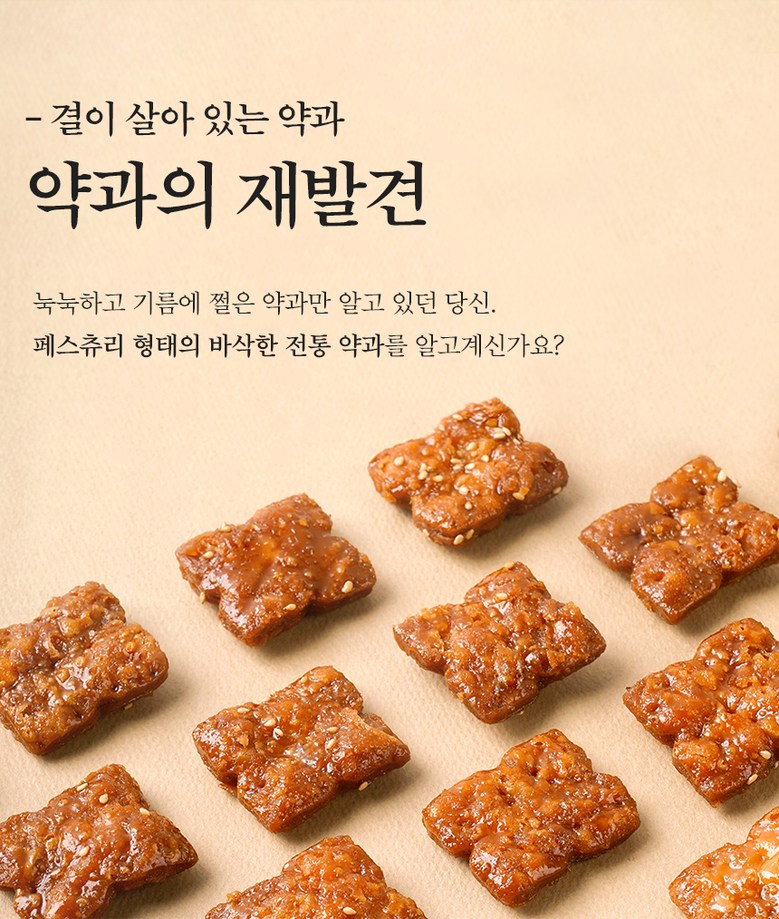 | 포장단위별 내용물의 용량(중량), 수량 | 포장단위별 용량(중량):270g x2 / 1Box / 포장단위별 수량:270g 24조각 x2팩 | 원재료명 및 함량 | 밀가루(미국,호주) 70% , 조청(옥수수:미국) 10%, 식용유 (미국,브라질,파라과이 등) 8% ,설탕 7%, 막걸리 [정제수,(밀가루:외국산)] 4% , 생강가루(중국), 계피가루(베트남),향료(바닐라향) |