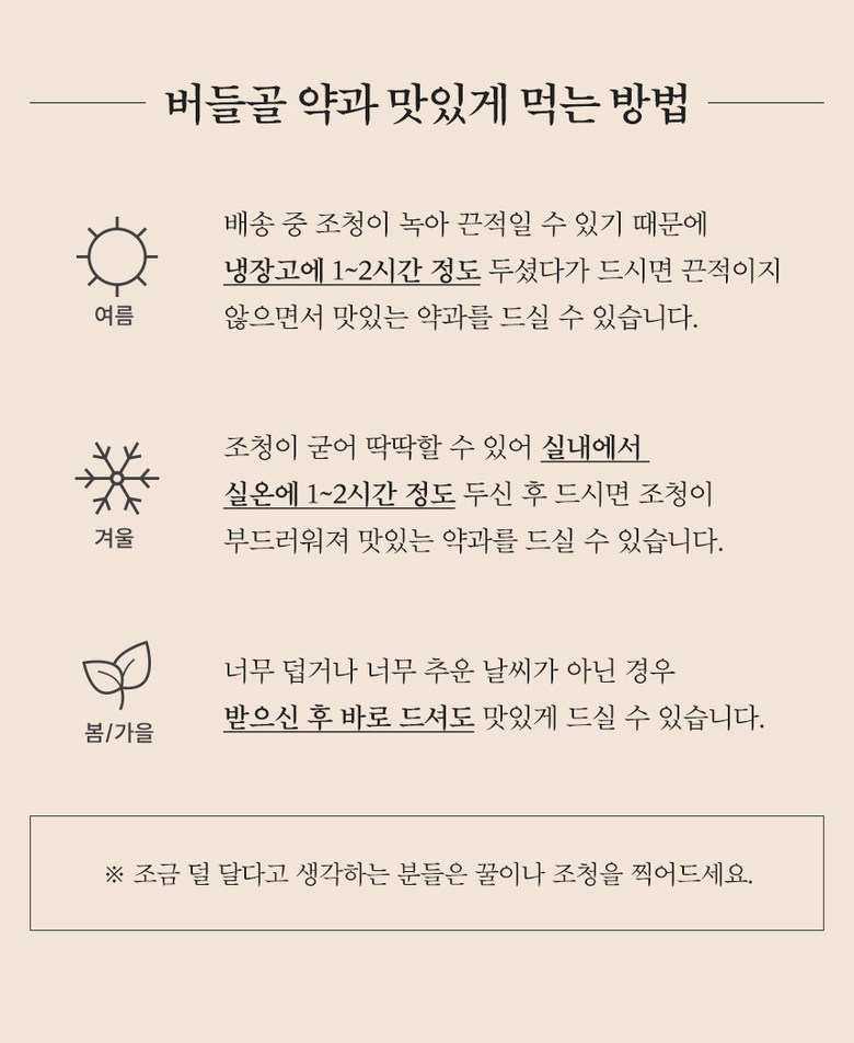 | 생산자 및 소재지 | 생산자:버들골 //김재나 / 소재지:강원 춘천시 서부대성로12 지하11호 | 제조연월일, 소비기한 또는 품질유지기한 | 제조연월일:상품상세참조 / 유통기한:상품상세참조 |