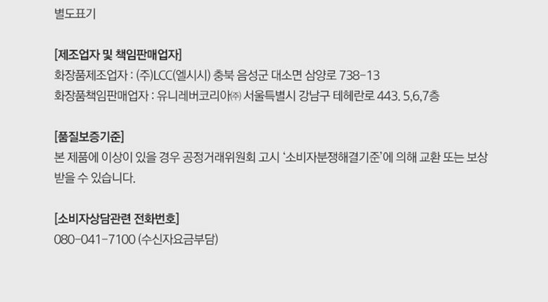 다만, 판매자의 제시사항이 관계법령보다 소비자에게 유리한 경우에는 판매자 제시사항이 적용됩니다.