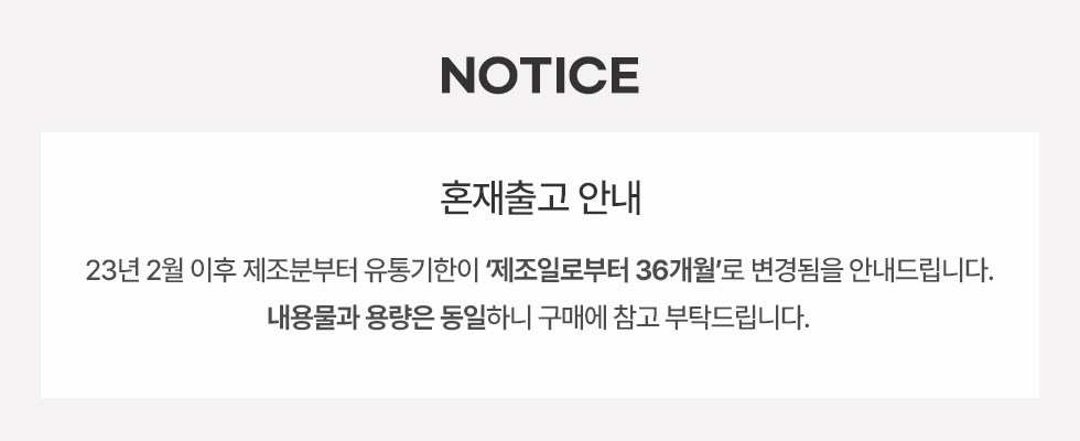 ※ 리뉴얼 진행중인 상품으로 사용기한, 전성분이 상이한 동일 제품을 수령하실 수 있습니다.