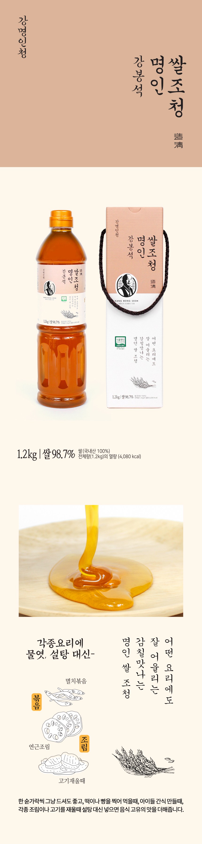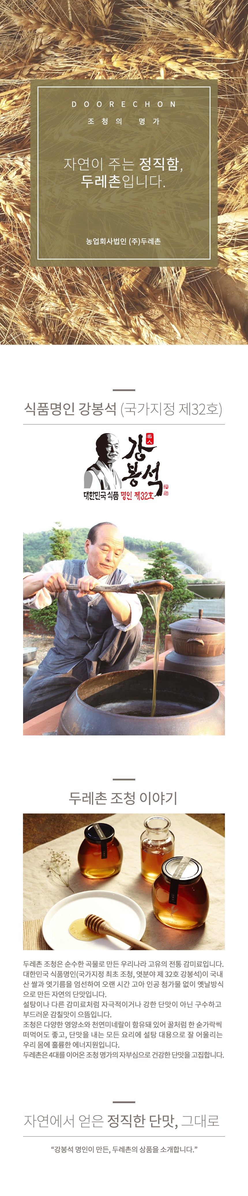| 제품명 | 두레촌 강봉석 명인쌀조청 | 식품의 유형 | 물엿 |