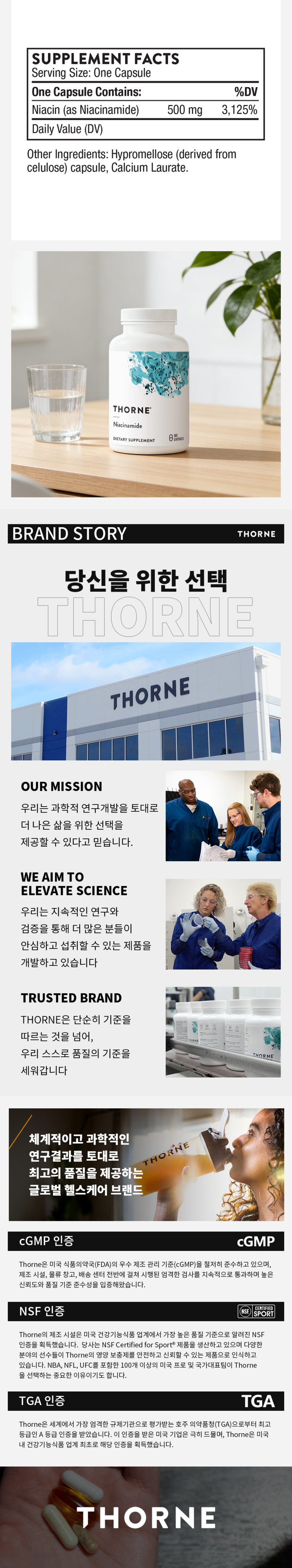 ✔ Thorne의 클린 포뮬러 — 불필요한 첨가물을 최소화한 원료 중심 설계