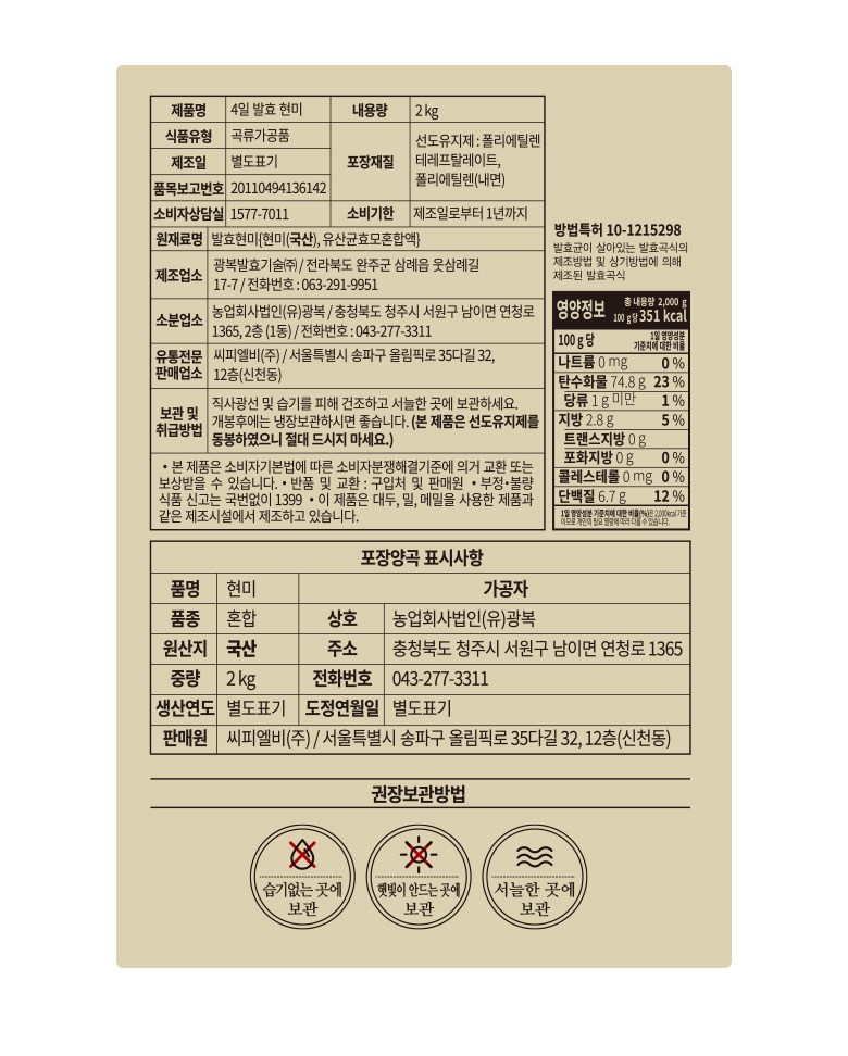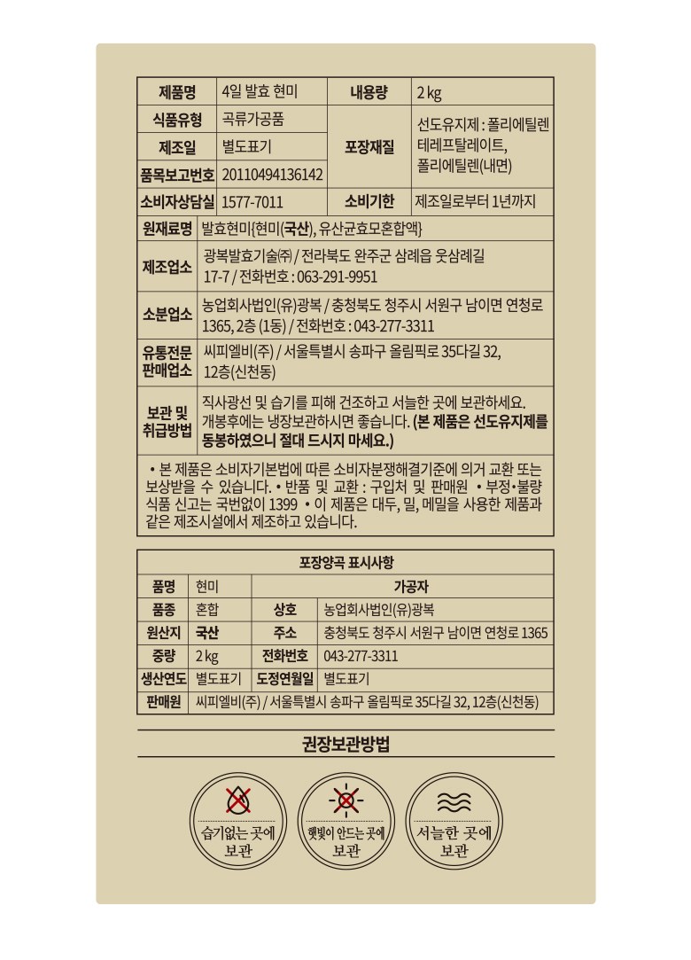 | 포장단위별 내용물의 용량(중량), 수량 | 2kg x 1개 | 원재료명 및 함량 | 컨텐츠 참조 |
