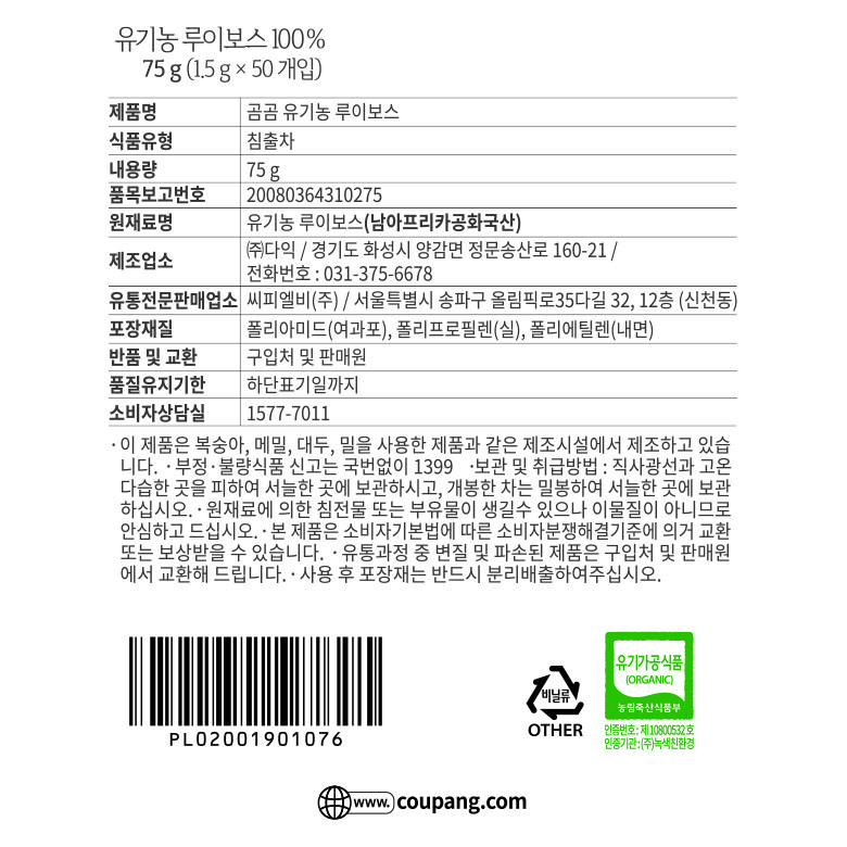 | 포장단위별 내용물의 용량(중량), 수량 | 75g | 원재료명 및 함량 | 컨텐츠 참조 |