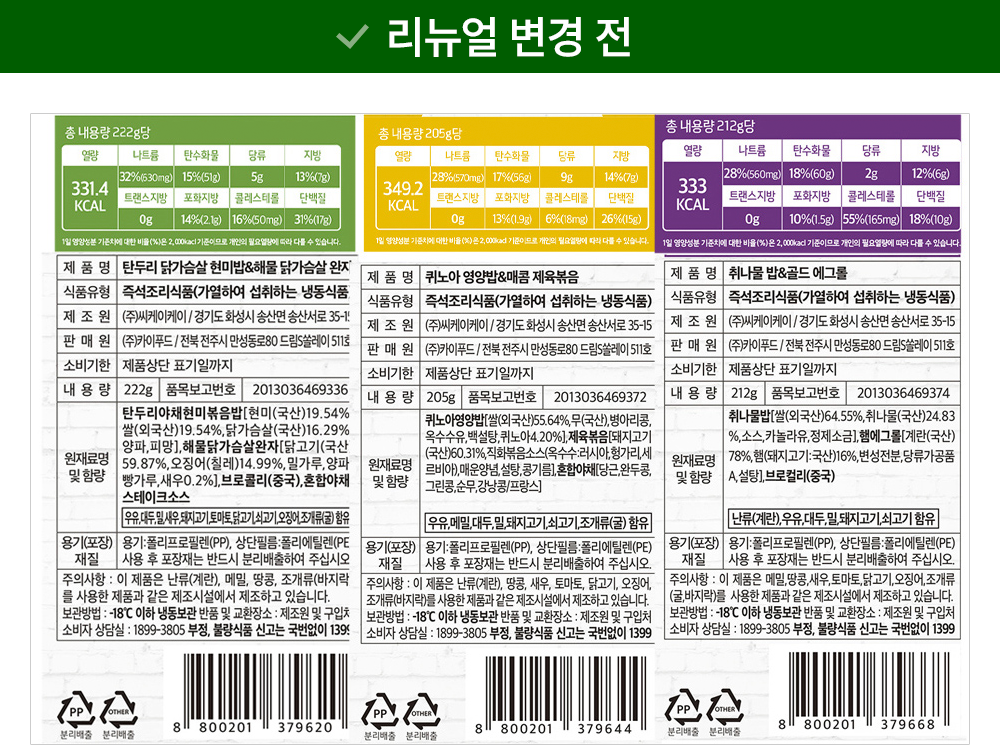 | 제품명 | 컨텐츠 참조 | 식품의 유형 | 컨텐츠 참조 |
