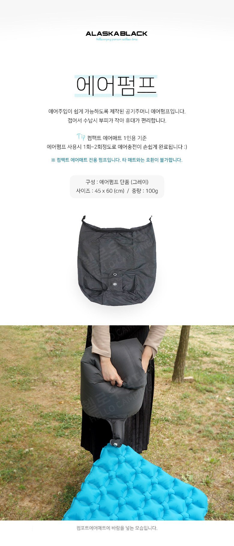 | 품명 및 모델명 | 알래스카블랙 컴팩트 에어펌프 | 인증/허가 사항 | 해당없음 |