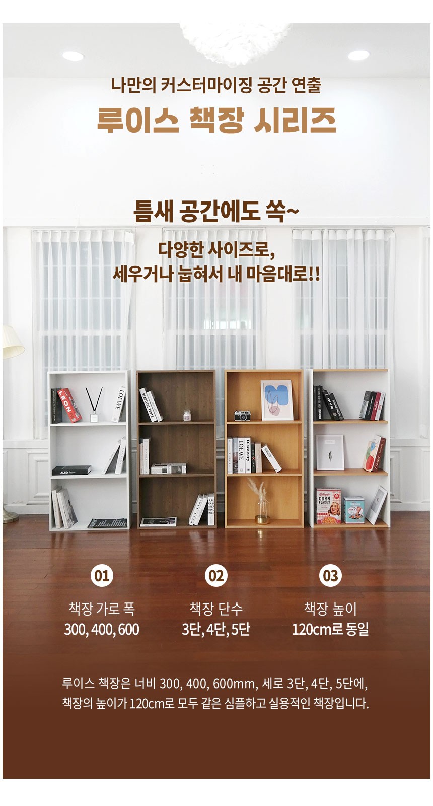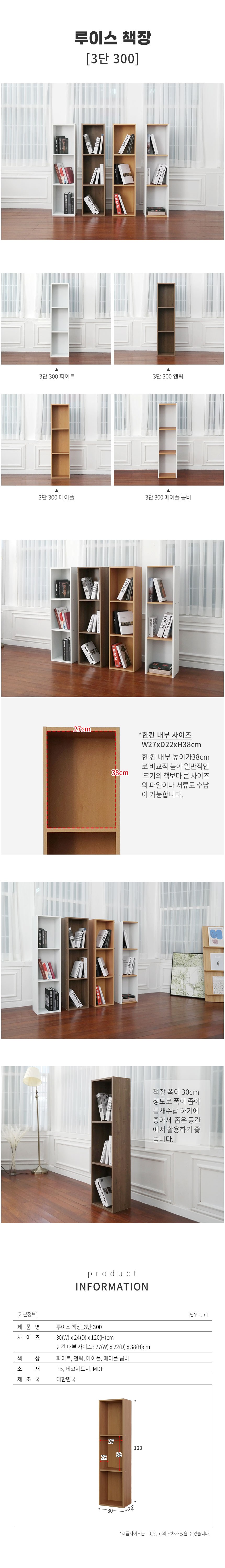| 품명 | 루이스 3단 책장 300 | KC 인증정보 | 해당없음 |