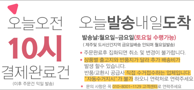 - ㆍ모니터 해상도의 차이로 인해 색상이나 이미지가 실제와 달라, 고객이 단순 변심으로 교환/반품을 무료로 요청하는 경우