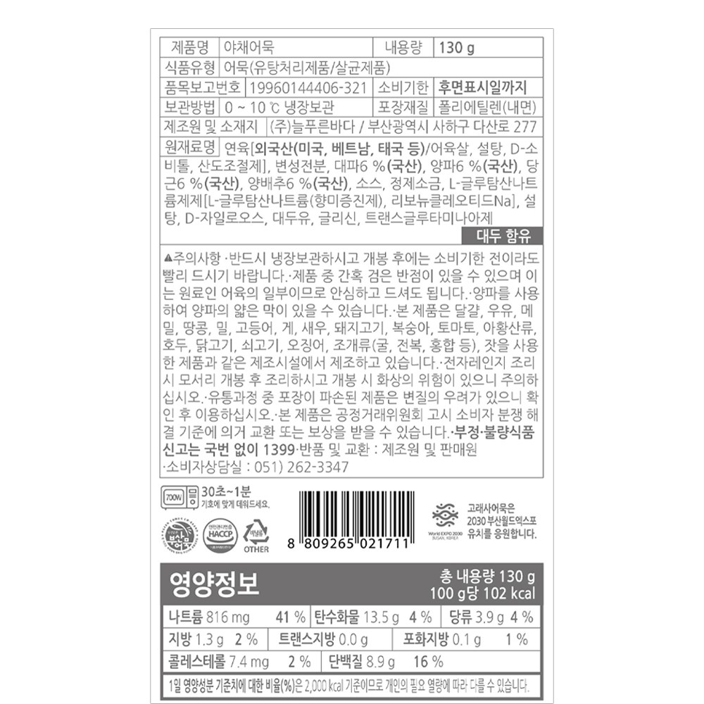 | 제품명 | 야채어묵 | 식품의 유형 | 컨텐츠 참조 |