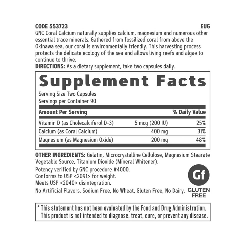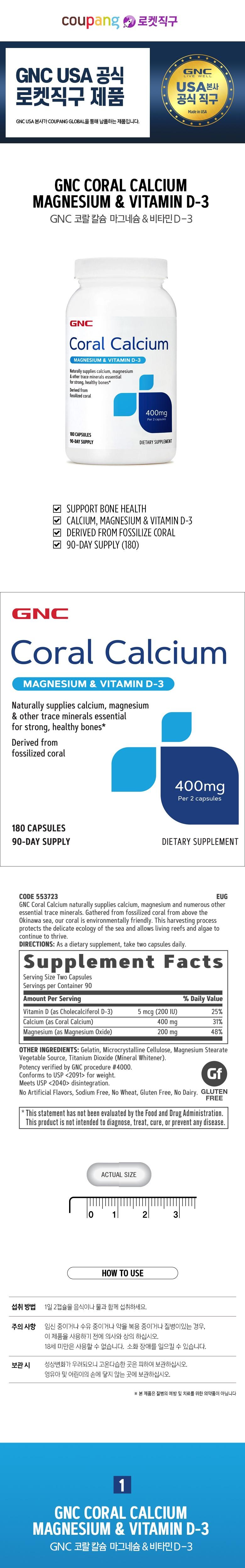 | 제품명 | GNC 코랄 칼슘 마그네슘 & 비타민 D3 400mg 캡슐 글루텐 프리 | 식품의 유형 | 기타가공식품 |