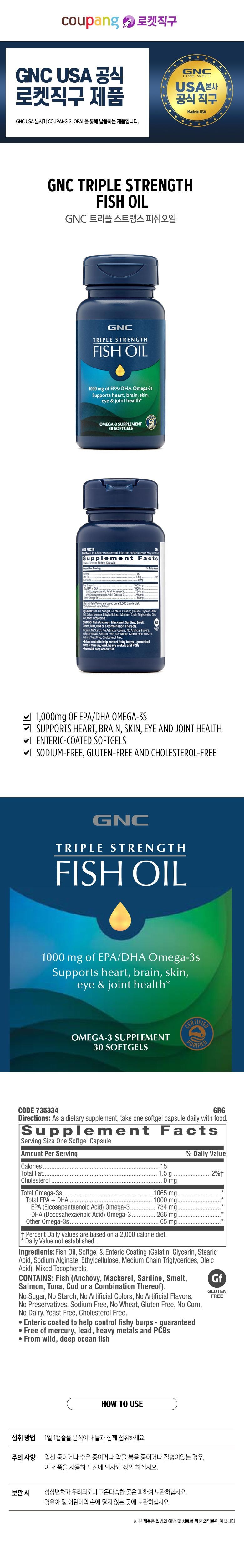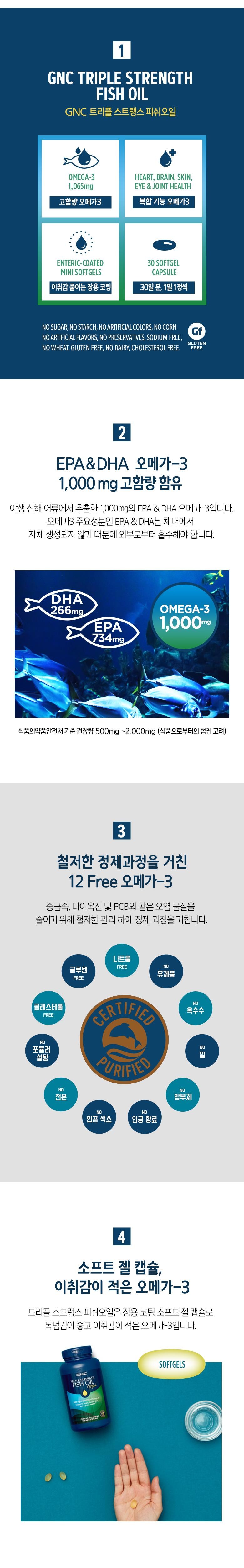 | 제품명 | GNC 트리플 스트렝스 피쉬 오일 1000mg 소프트젤 무설탕 글루텐 프리 | 식품의 유형 | 기타가공식품 |