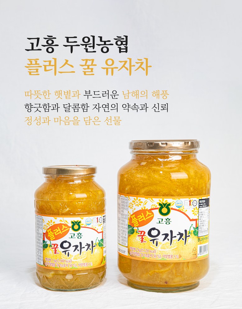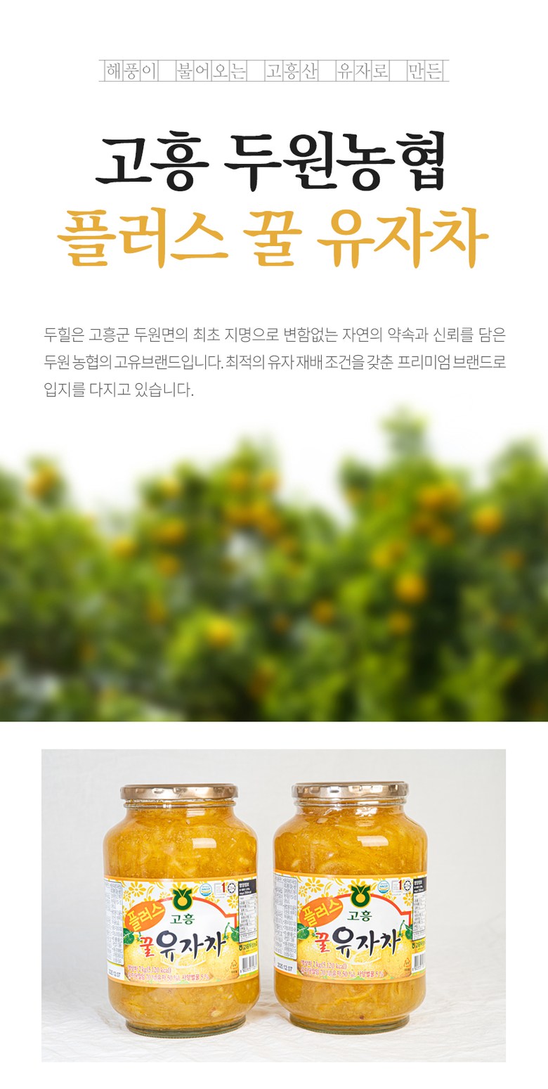 | 품목 또는 명칭 | 두원농협 유자차 유자청 | 포장단위별 내용물의 용량(중량),수량,크기 | 2kg, 2개 |